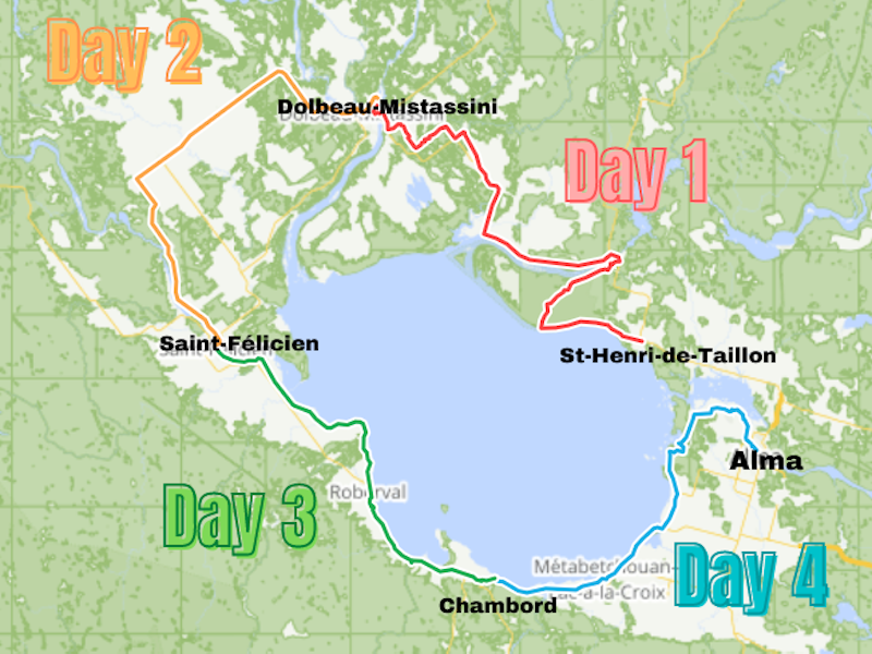 This package offers you the opportunity to cover the 256 kilometers of the tour of Lake Saint-Jean on the Véloroute des Bleuets in 4 days.
