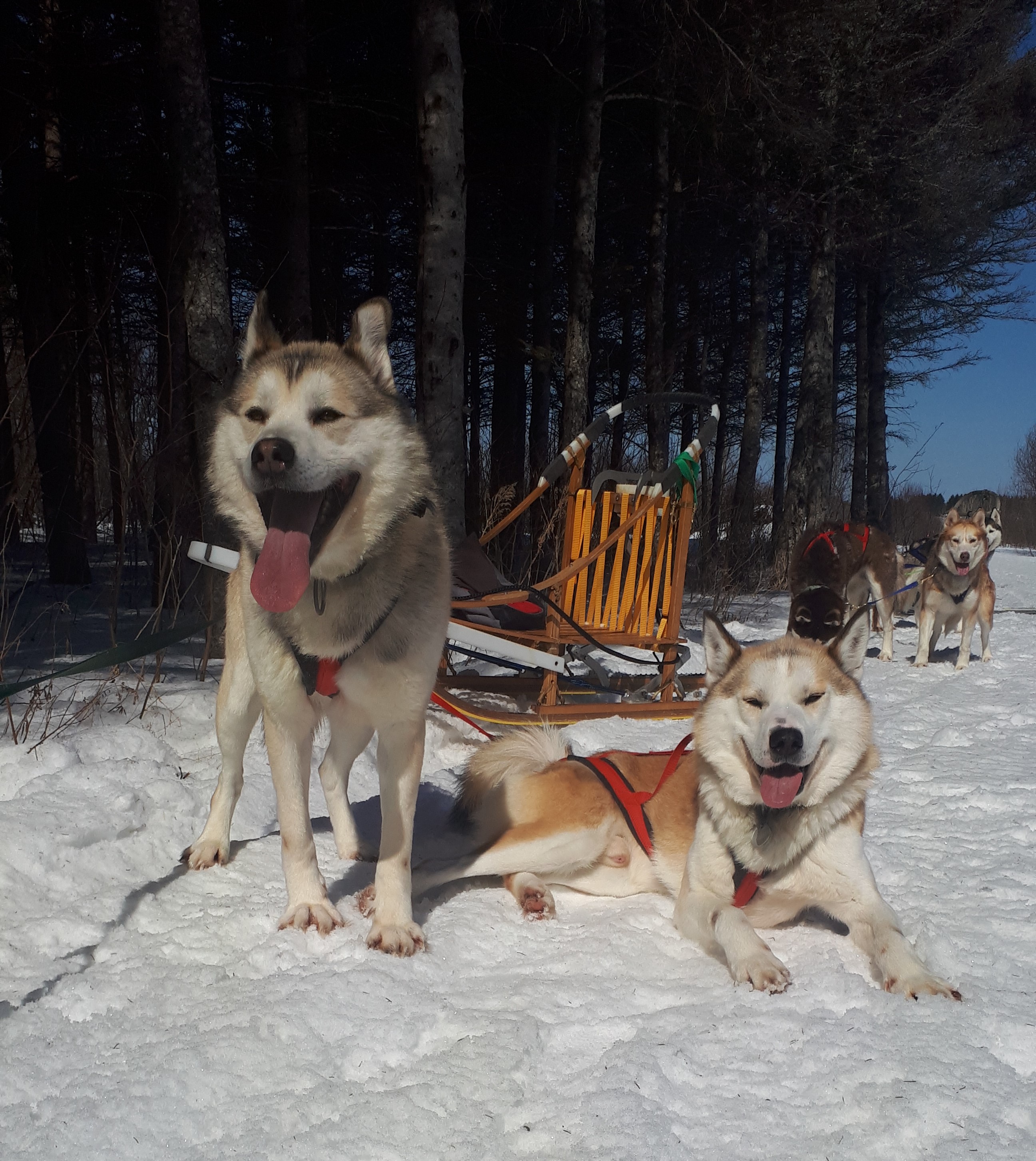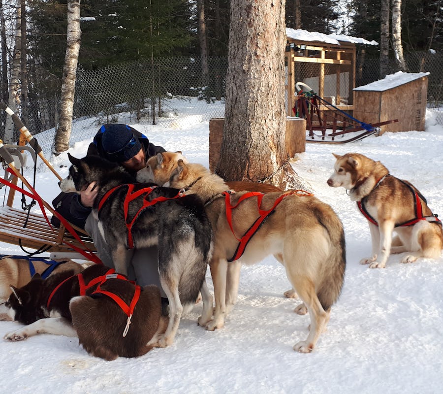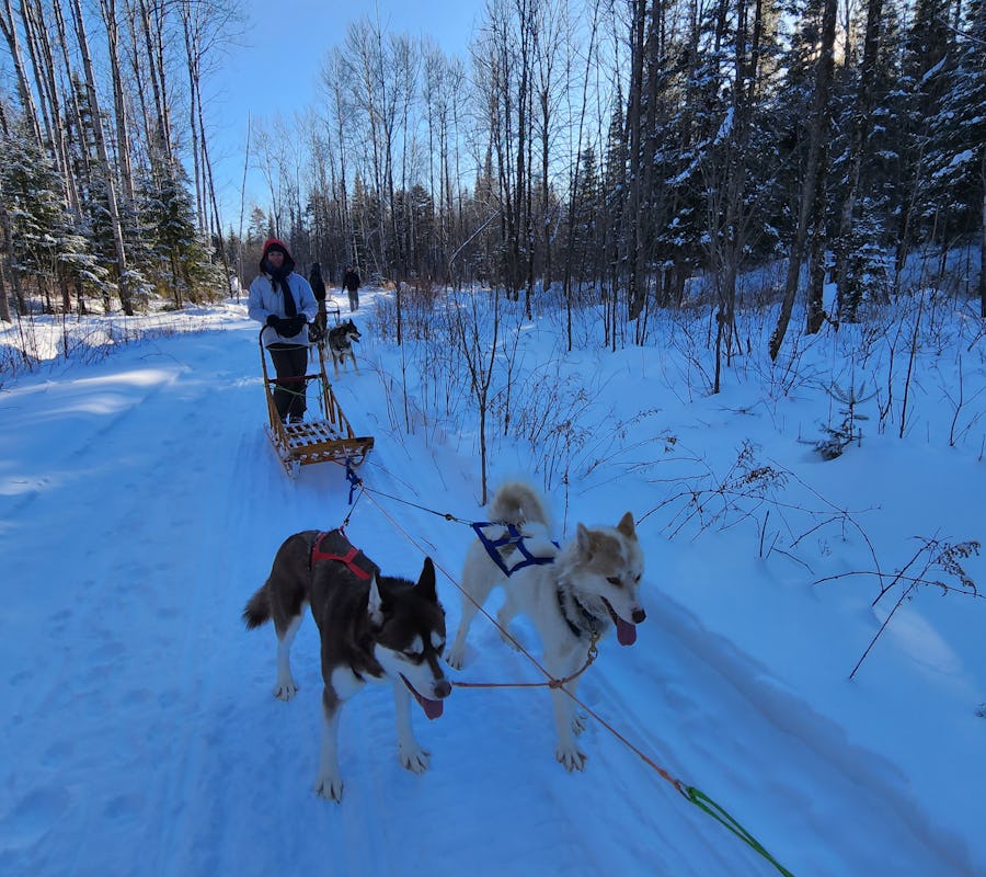 Expérimentez une immersion dans la vie d'une meute de chiens nordiques. Accompagnés d'un guide certifié, vous parcourrez des sentiers qui alternent forêts et champs aux commandes de votre traineau à chiens.